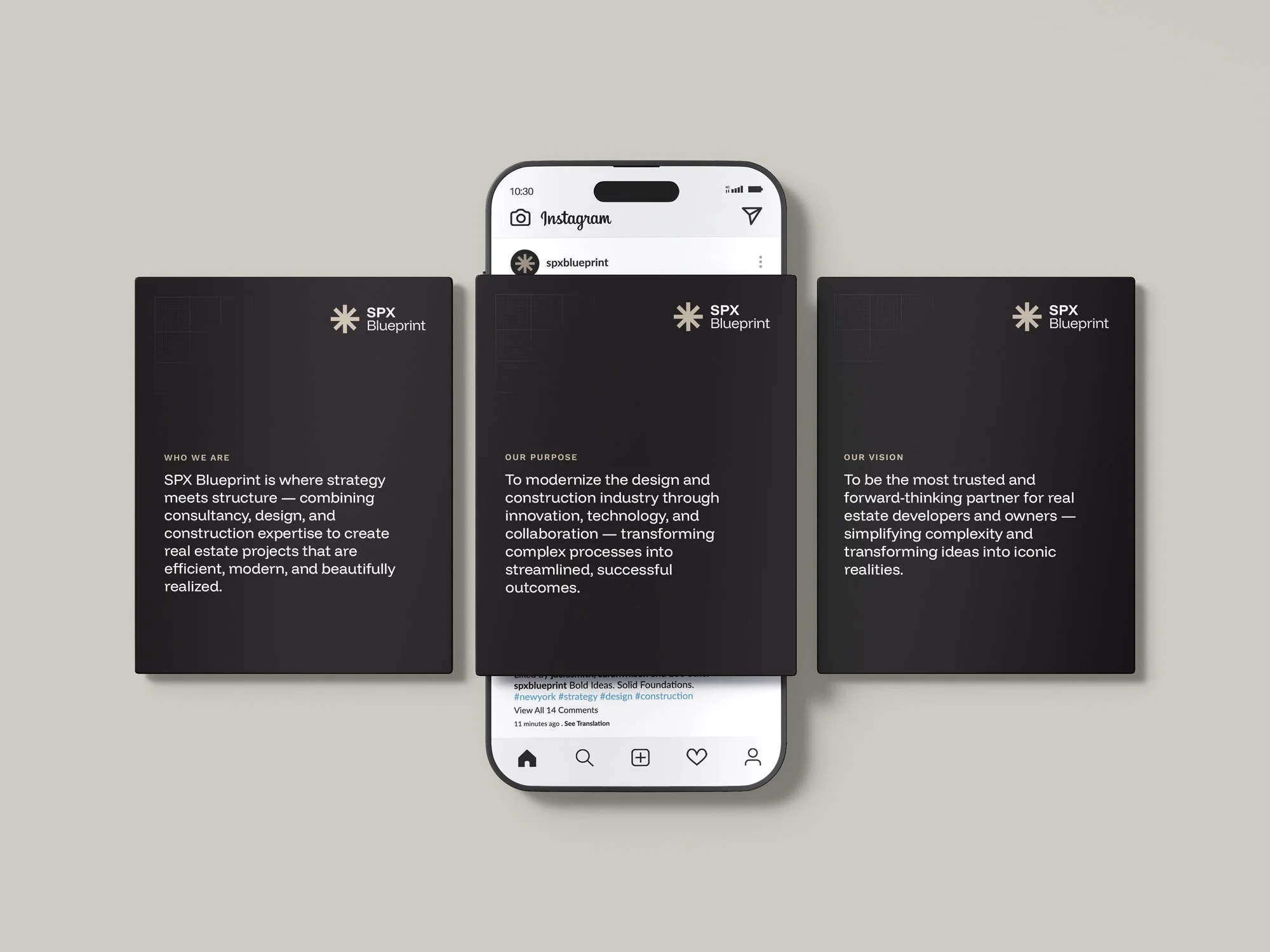 SPX Blueprint is a New-York based company that specialises in Consultancy, Development, Design and Construction. The brand identity is personable, while still retaining a strong, bold, sleek, and clean aesthetic. SPX Blueprint blends strategy, design, and construction to transform your real estate projects into stunning realities. From expert consulting to complete ground-up construction, our precise and innovative solutions are crafted to meet your unique needs.
